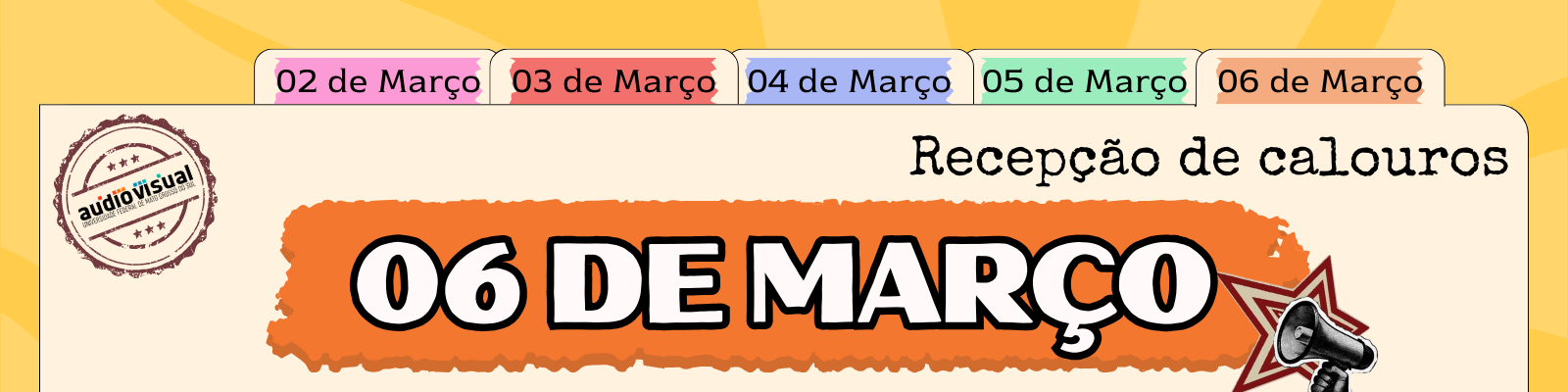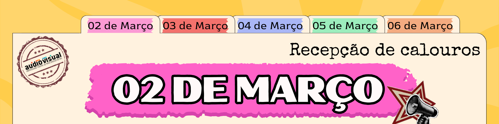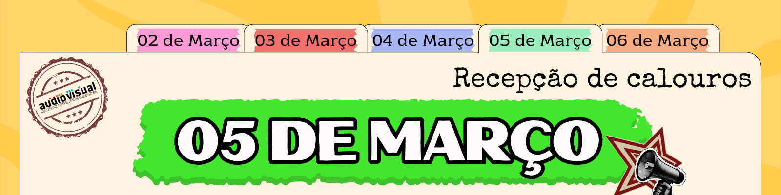 Iniciaremos o dia com uma roda de conversa sobre as experiências e possibilidades do Audiovisual dentro e fora do ambiente acadêmico. Será um momento de troca, escuta e diálogo sobre trajetórias, mercado de trabalho e vivências no curso.